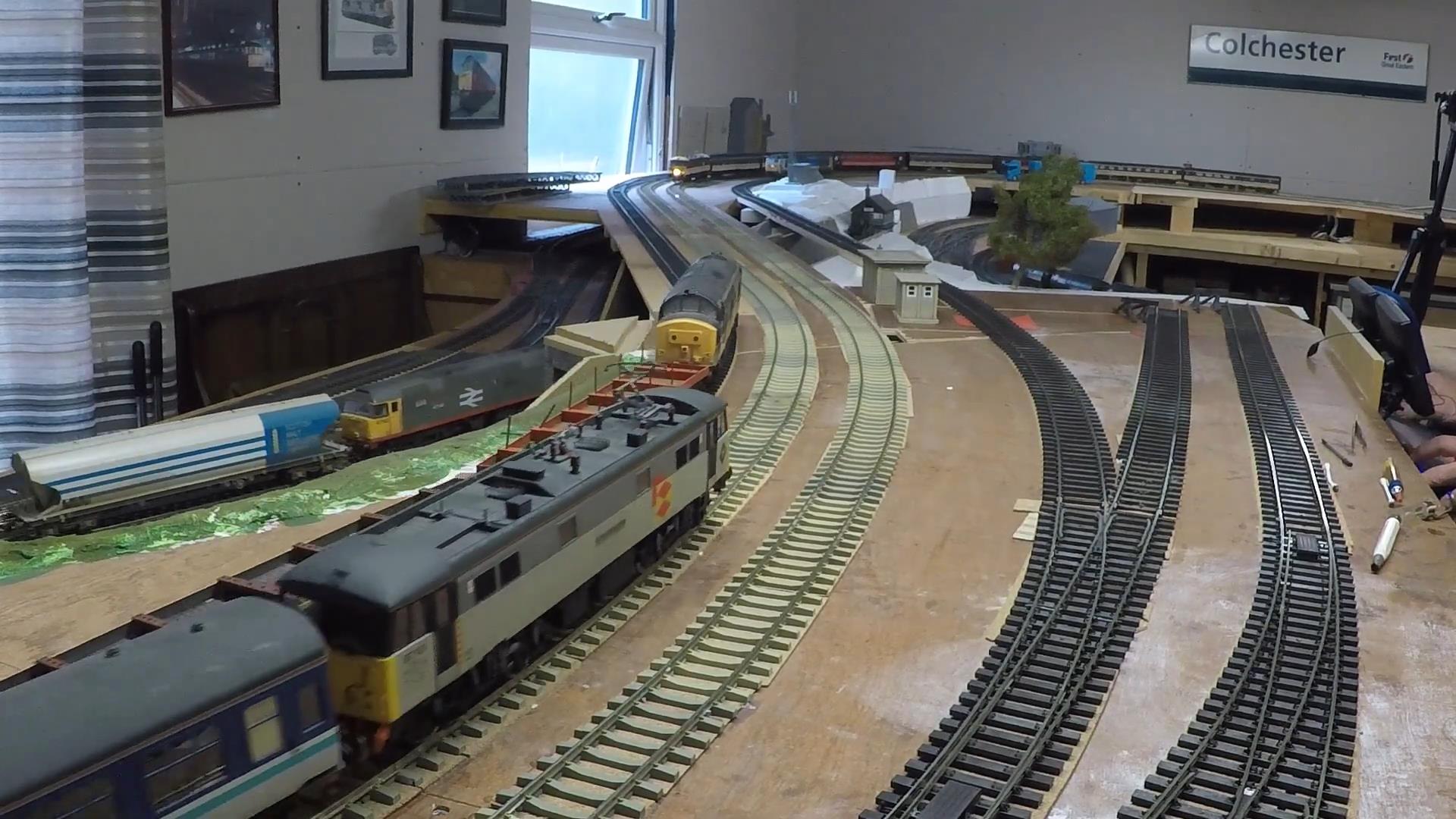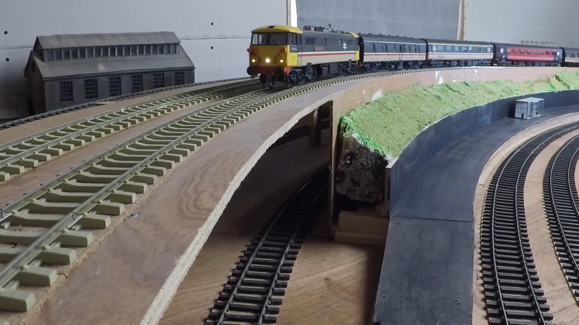 The new layout was born out of a discussion in a Brewers Fair involving Dave Lowery and I with only a few pints of beer, a pen and a napkin to start the planning process. “Well what do you want then” asked Dave to which I gave a simple response “A mainline station, 7 coach passenger trains passing longer freight trains, a country station, diesel depot, nuclear flask plant and a reverse curve” “Oh and enough space to store 20 full length trains”, Simple!!!!