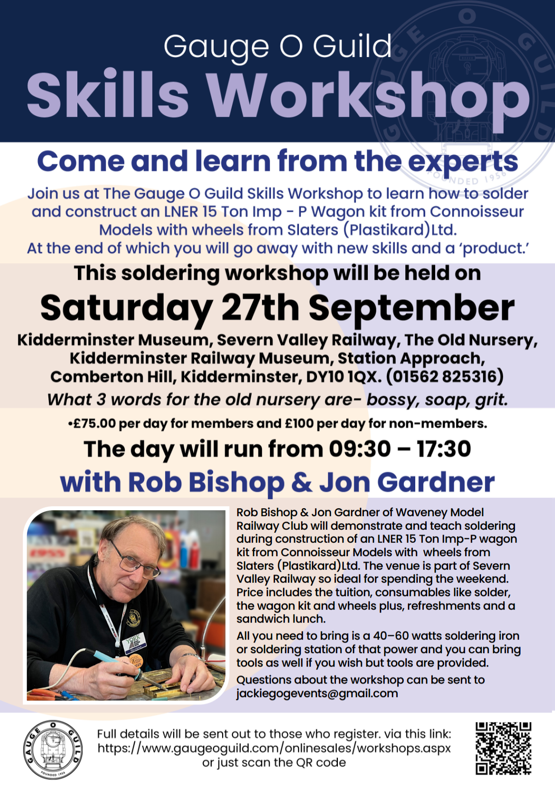 This workshop will be about learning soldering skills by putting together a LNER 15 Ton Imp - P Wagon kit from Connoisseur Models with wheels from Slaters (Plastikard) Ltd. The wagon and wheels are provided as part of the workshop for you to work on and then take away and complete after the event.