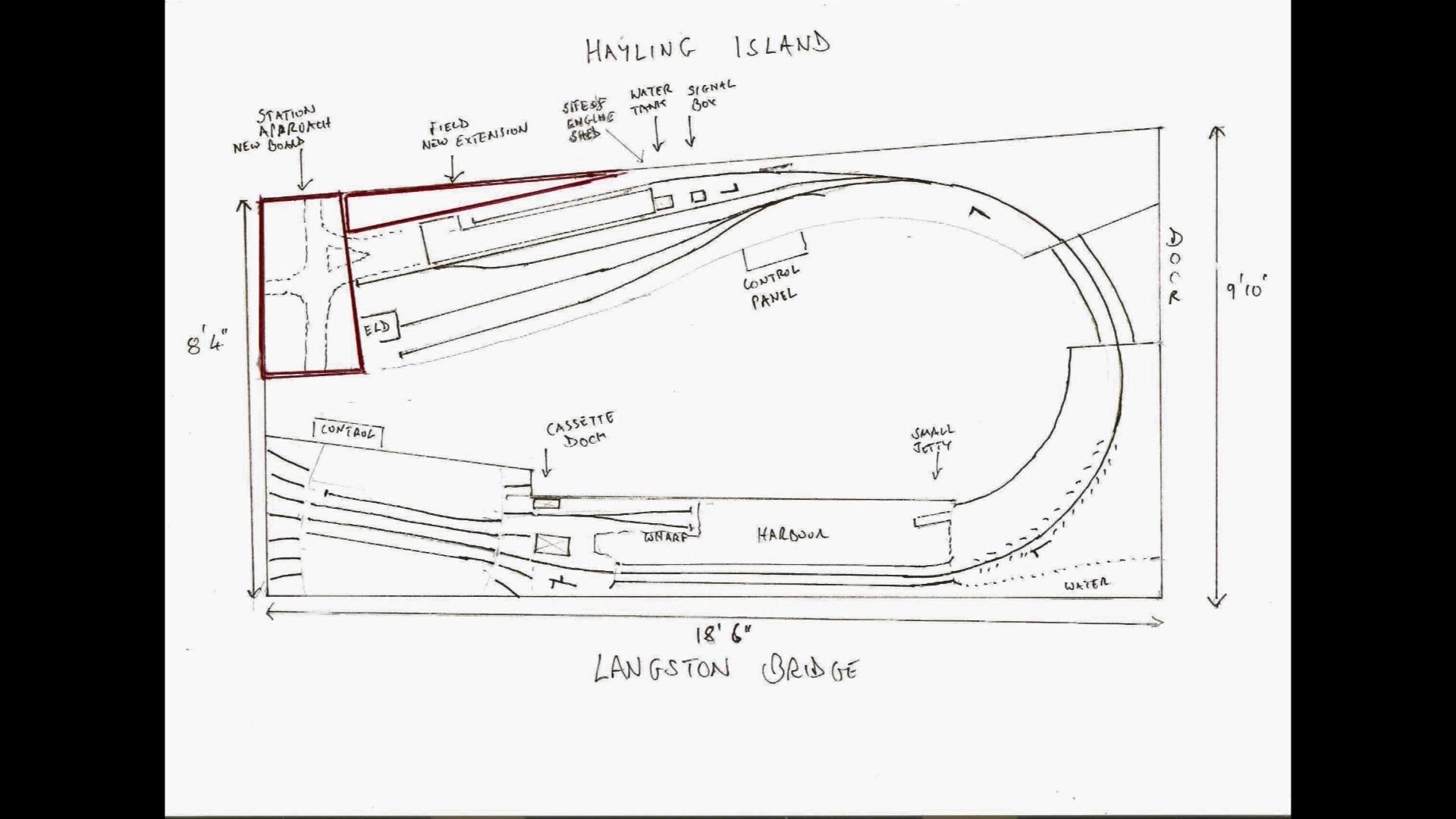 I have always wanted to model a prototype station and the terminus at Hayling Island was one of the smallest of LB&SCR terminii. Even so a little compression was necessary to fit the station within 11' 4”, to allow a “U” shaped layout in the 15' x 11' shed. The two station baseboards and the fiddle yard were designed to be easily removable and the platform, which spans both boards, was built as a separate unit. A recent move of house meant they could be reused, though the remainder of the layout had to be built again. The new home is in a garage 18' 6” long but only 9' 10” wide, restricting the radius to 4'. The station boards were angled to bring the throat close to the wall but the extra length will make it possible to model the road approach to the station. This, and a new triangular section behind the station, lift off to provide access. Passing over a lifting section by the door, the track traverses Langston Bridge, only 7' 6” long rather than the correct 25 feet! The fiddle yard is 5' 8”, with a 4 road sector plate 47” in length, with stub sidings at either end, to store spare locos, brake vans and coaches, thus minimising handling. One stub siding gives access to a wharf with two short sidings and the first two sector plate roads lead to a docking unit to locate cassettes, which are stored under the layout. These contain trains which only appear occasionally in the operating sequence, so as to free space on the sector plate. The idea and the cassettes came from the late Peter Korrison.