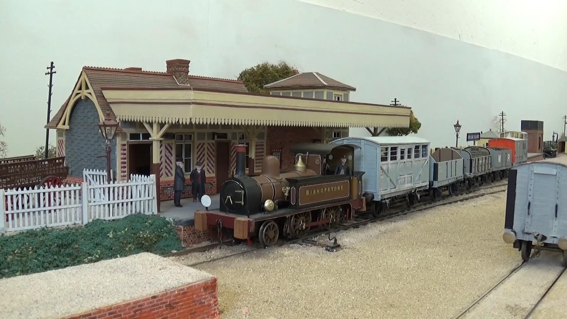 Hayling Island station building was very attractive, unusual and complicated to build. The main material was Plastikard, with the red and white brick infills between panelling using some old Thornton embossed brickwork sheets. The roof is removable in three separate sections and the patterned tiles and valancing for the canopy were cut by Devon Lasercraft. The layout depicts as accurately as possible the station between 1898 and 1899. To vary the composition of trains spare vehicles are added or removed and can be stored in the siding behind the platform.
