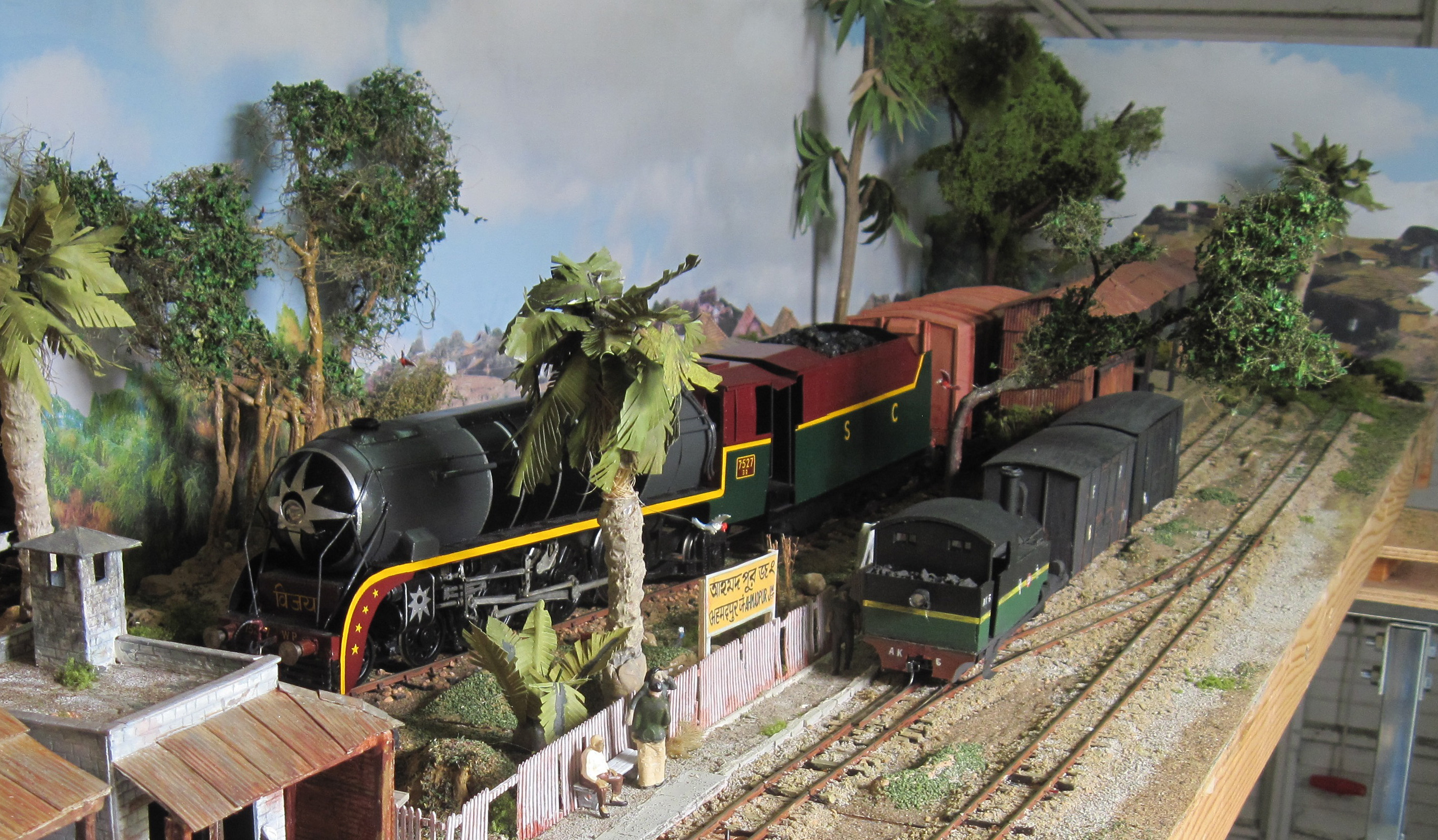 A fleeting visit to the small Indian town of Ahmadpur, north of Calcutta, in 1992, provided the inspiration for this diarama. The archetypical Indian narrow gauge station was the terminus for a line from Katwa while just behind was the broad gauge station on the northbound line from Calcutta. A goods shed provided an interchange for freight between the two gauges while passengers either had to walk across the tracks or through the town.