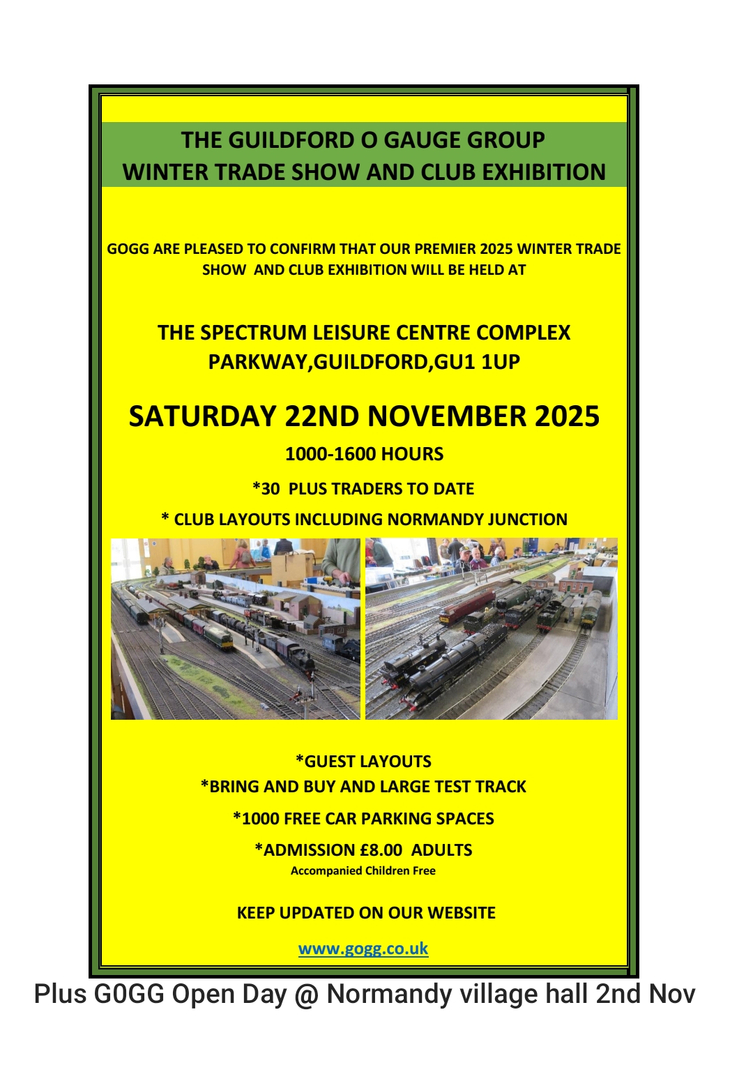 Our Annual spectacular Trade Show with over 30 O gauge traders selling everything you need to build a loco, carriage or layout.